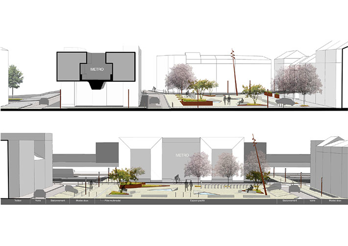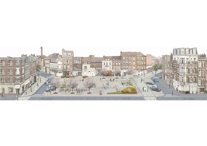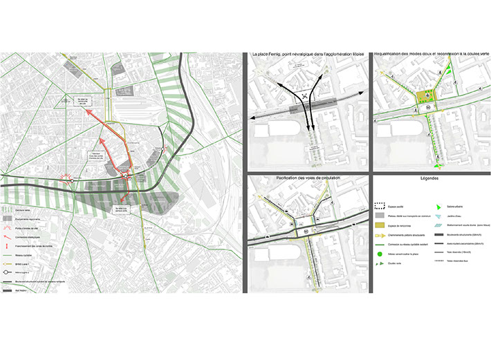 Au cœur d’un quartier dynamique de la ville de Lille, la Place Fernig était confrontée à la nécessité d’une revalorisation d’ensemble afin de reconquérir son statut de place forte au sein d’un territoire en pleine mutation. L’espace était au centre d’une importante infrastructure de transports publics, réunissant à la fois bus et métro, et accueillant par ailleurs les modes doux cyclistes [V’Lille] et piétons. Le projet proposait ainsi de travailler à la fois à l’amélioration de la hiérarchie des voies, mais aussi de favoriser l’interaction avec les différentes fonctions riveraines, et de conforter les liens avec les nouveaux usages.