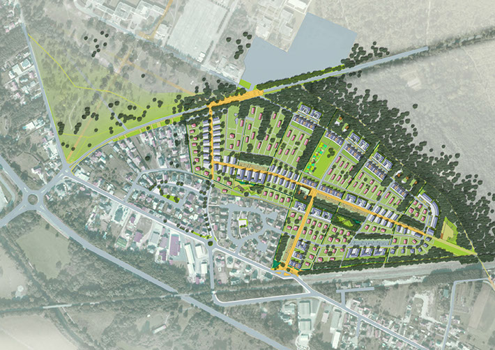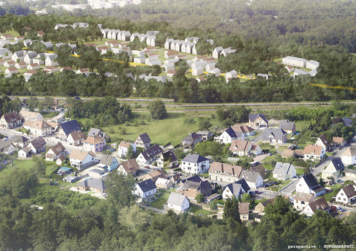 Le nouveau quartier ‘Les Binsen’ s’inscrit dans la continuité de la commune, il s’étend sur 8.1 ha, créant une offre de 500 logements [200 en phase 1/300 en phase 2], de nouveaux équipements et services de proximité dont une crèche, une superette. Le projet s’appuie sur les atouts paysagers du site, le maillage urbain repose sur l’interpénétration des espaces boisés existants maintenus en partie et les nouvelles constructions. Le quartier est porté par l’axe est-ouest, connecté au centre-ville. Cette ‘spielstrasse’ dessert les différents logements et équipements, ainsi que deux jardins publics, l’amphithéâtre de verdure en périphérie. Le projet s’inscrit dans une démarche durable ; les abris vélos jalonnant la spielstrasse sont pourvus de panneaux solaires, l’eau de pluie est gérée par des noues, les modes doux sont privilégiés et les futures constructions offrent un cadre de vie sain, respectueux de l’environnement. Les caractéristiques architecturales des nouvelles constructions s’appuient sur les formes traditionnelles locales.