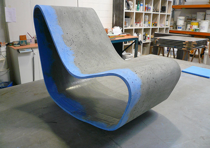 Le fauteuil Looping chair s'inspire du dessin de Willy Guhl revisité avec la technologie du Ductal® permettant d'obtenir un ruban de béton d'une épaisseur de 1,5 cm. Sa constitution lui permet d'allier résistance et souplesse en proposant un aspect béton résolument contemporain. Ainsi, ce mobilier peut aussi bien être utilisé en intérieur qu'en extérieur se mariant avec toutes les ambiances. La béton a été fixée avec une cire pour exempter la finition de la poudre de laitance.