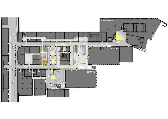Au pied des tours Europe, Blanche, et Carpe Diem, l’entrepont Corolles est un espace sous dalle, longtemps délaissé, qui constitue un premier accès à La Défense pour de nombreux usagers, et plus spécifiquement pour les usagers des tours. Le projet de requalification s’est attaché à lui redonner des qualités d’usage plus significatives, un caractère plus fonctionnel, de créer une ambiance agréable, de gagner en confort et en sécurité. Le percement de la dalle a permis de mettre en lien le square implanté en surface et l’espace sous dalle, en créant des espaces paysagers de grande qualité. Un jardin tropical est ainsi développé en sous-sol et le square est entièrement réaménagé. Ce dernier accueille désormais de nouveaux cheminements, permettant une déambulation plus aisée, ainsi que plusieurs excroissances vitrées, ‘les diamants’, nourrissant ainsi en luminosité l’espace souterrain. Les usagers peuvent désormais s’approprier réellement cette spatialité innovante, dans le cadre de leurs déplacements ou autre pauses déjeuner.