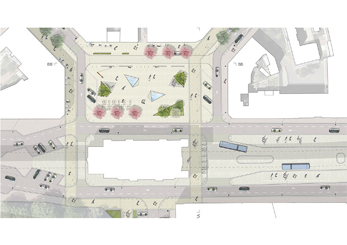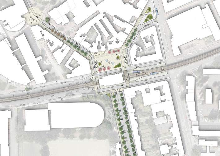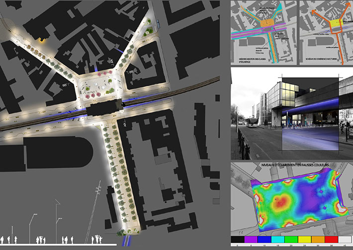 Au cœur d’un quartier dynamique de la ville de Lille, la Place Fernig était confrontée à la nécessité d’une revalorisation d’ensemble afin de reconquérir son statut de place forte au sein d’un territoire en pleine mutation. L’espace était au centre d’une importante infrastructure de transports publics, réunissant à la fois bus et métro, et accueillant par ailleurs les modes doux cyclistes [V’Lille] et piétons. Le projet proposait ainsi de travailler à la fois à l’amélioration de la hiérarchie des voies, mais aussi de favoriser l’interaction avec les différentes fonctions riveraines, et de conforter les liens avec les nouveaux usages.