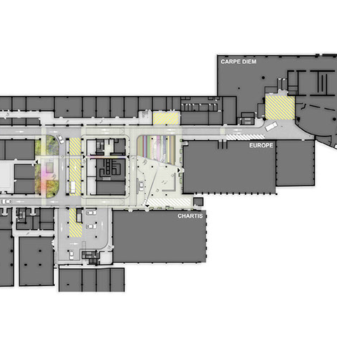 Au pied des tours Europe, Blanche, et Carpe Diem, l’entrepont Corolles est un espace sous dalle, longtemps délaissé, qui constitue un premier accès à La Défense pour de nombreux usagers, et plus spécifiquement pour les usagers des tours. Le projet de requalification s’est attaché à lui redonner des qualités d’usage plus significatives, un caractère plus fonctionnel, de créer une ambiance agréable, de gagner en confort et en sécurité. Le percement de la dalle a permis de mettre en lien le square implanté en surface et l’espace sous dalle, en créant des espaces paysagers de grande qualité. Un jardin tropical est ainsi développé en sous-sol et le square est entièrement réaménagé. Ce dernier accueille désormais de nouveaux cheminements, permettant une déambulation plus aisée, ainsi que plusieurs excroissances vitrées, ‘les diamants’, nourrissant ainsi en luminosité l’espace souterrain. Les usagers peuvent désormais s’approprier réellement cette spatialité innovante, dans le cadre de leurs déplacements ou autre pauses déjeuner.