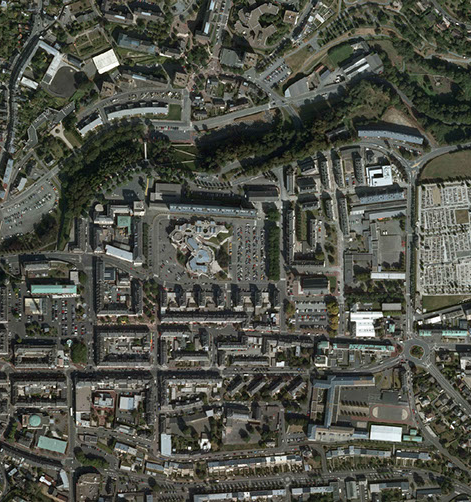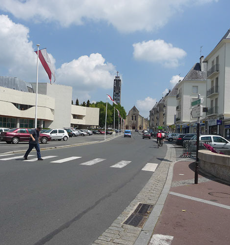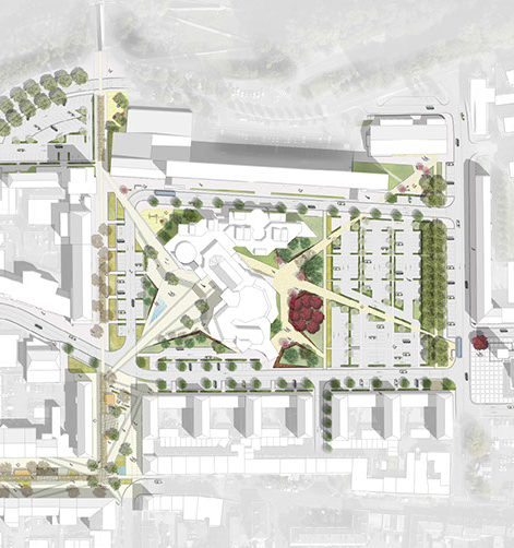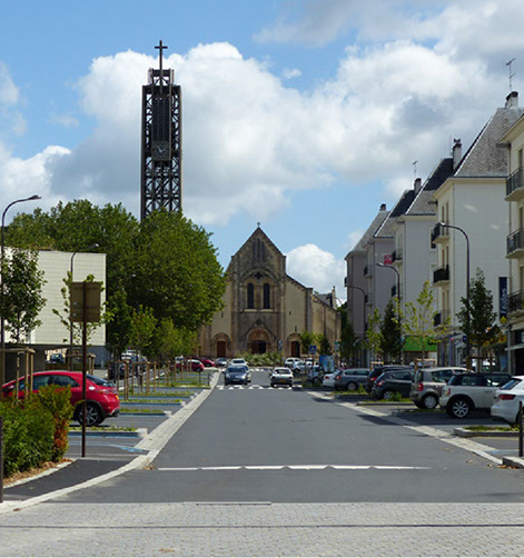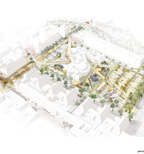Le cœur de ville de Saint-Lô s’anime autour d’une dynamique Est-Ouest, des rives de la Vire jusqu’au haut du plateau. Axe historique liant la majeure partie des attractivités du centre, il est formé des rues Torteron et Carnot, Général Leclerc et Neufbourg. Le projet relie dans l’axe Nord-Sud, la promenade historique et commerciale au champ de Mars plus en retrait. Ces liaisons sont réalisées dans la continuité des porosités existantes en s’appuyant sur les éléments d’attractivité. Chaque liaison douce est traitée comme un chemin intentionnel encourageant les usagers à découvrir la place du champs de Mars, avec un traitement particulier et une perspective agréable invitant au parcours. Des lieux conviviaux sont crées, dédiés au passage, à la pause, à la mise en scène ou à l’habitat, facilitant l’appropriation de l’espace : ‘L’Amphithéâtre’, parvis et entrée du centre culturel développe l’attractivité de ce dernier, ‘Le Square’, promenade et espace d’exposition extérieure en prolongement des activités du centre et un ‘Parc Stationné’.
