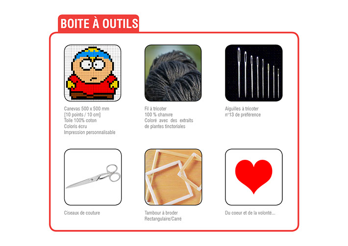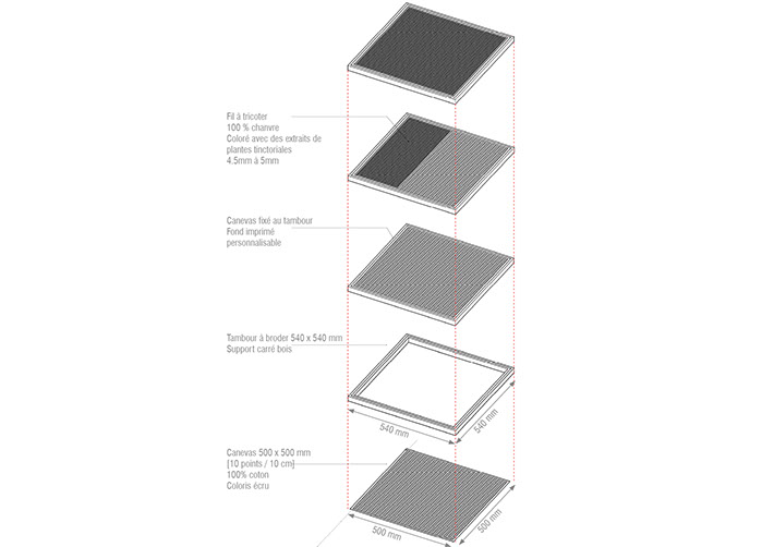 TapX part d’un souvenir de banc d’école, un cadeau pour la fête des mères un peu oublié, et pourtant qui a toujours été là, accroché dans le salon. Nous avons souhaité le mettre au goût du jour, faisant de la création d’un tapis, un jeu ouvert à tous les âges et à toutes les tendances. Ce souvenir, c’est le point de croix, un point de broderie ancestral, facilement réalisable, et permettant une véritable liberté de texture, de graphisme et de dimensions. L’usager n’est plus le simple spectateur de ce qu’il consomme, il participe activement à l’acte de création. TapX devient ainsi une création originale, personnalisable à souhait. Il suffit en effet d’imprimer le graphisme de son choix, ou de choisir un imprimé de canevas existant et de s’adonner ainsi aux joies du point de croix, et à la réalisation de tapis personnalisés pour chez soi ou pour offrir. Afin d’en faciliter l’usage, nous avons souhaité partir sur un module carré et de proposer de multiplier les modules pour créer un patchwork unique et original.